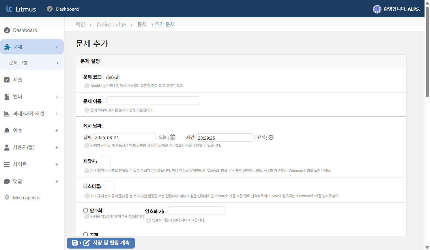 문제 암호화: 문제의 보안을 위해 암호화 기능을 사용할 수 있습니다. 주로 과제나 대회가 시작되기 전까지 문제를 비공개로 유지하기 위해 사용됩니다.