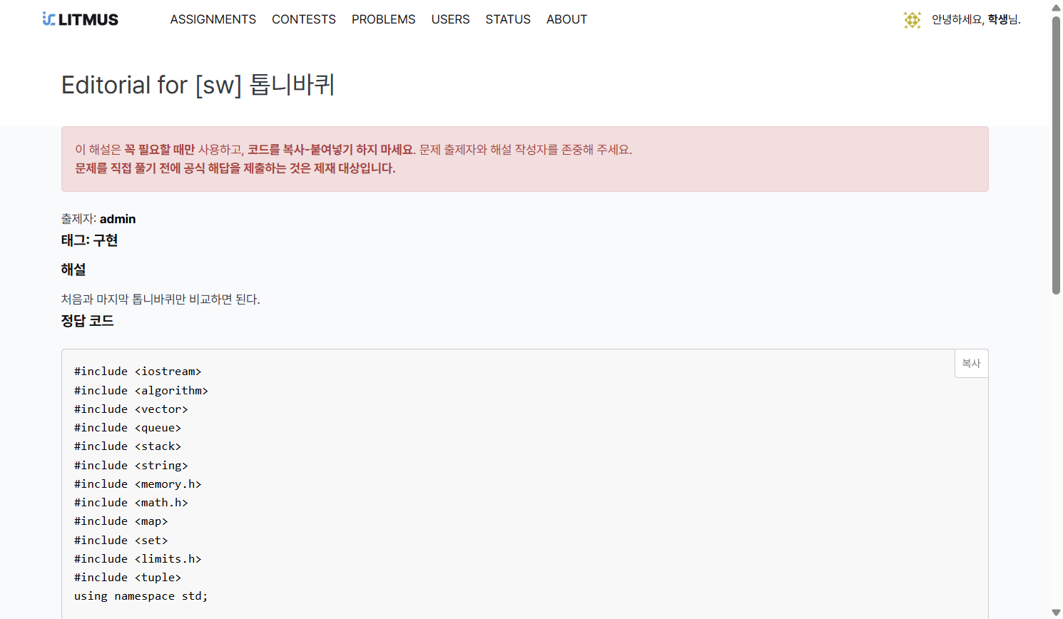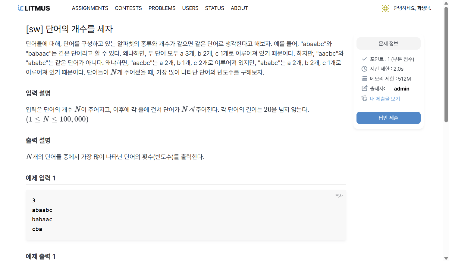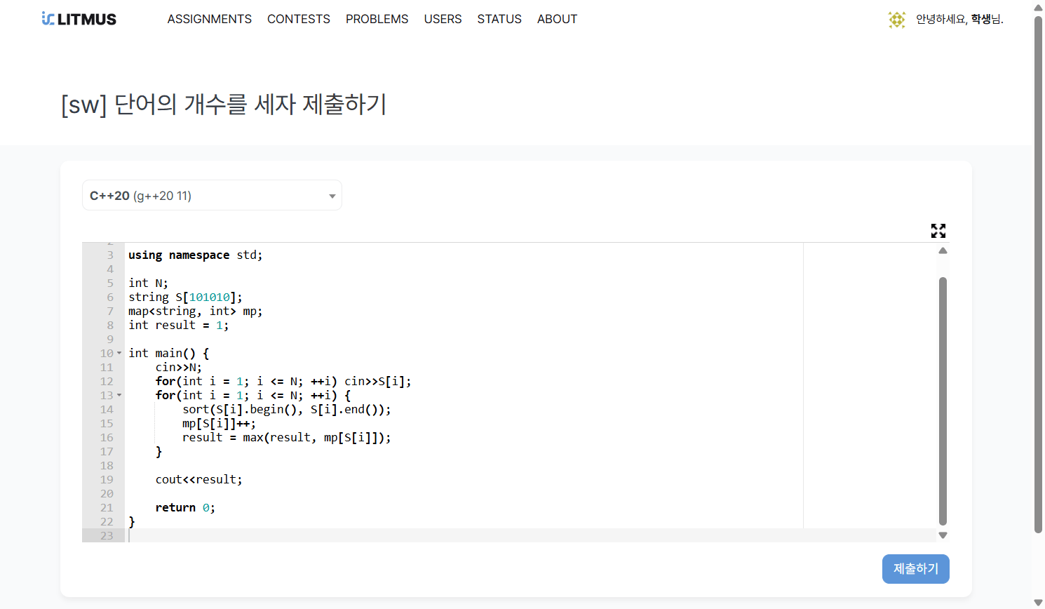 제출: 내가 제출한 코드들의 채점 결과를 확인할 수 있습니다.