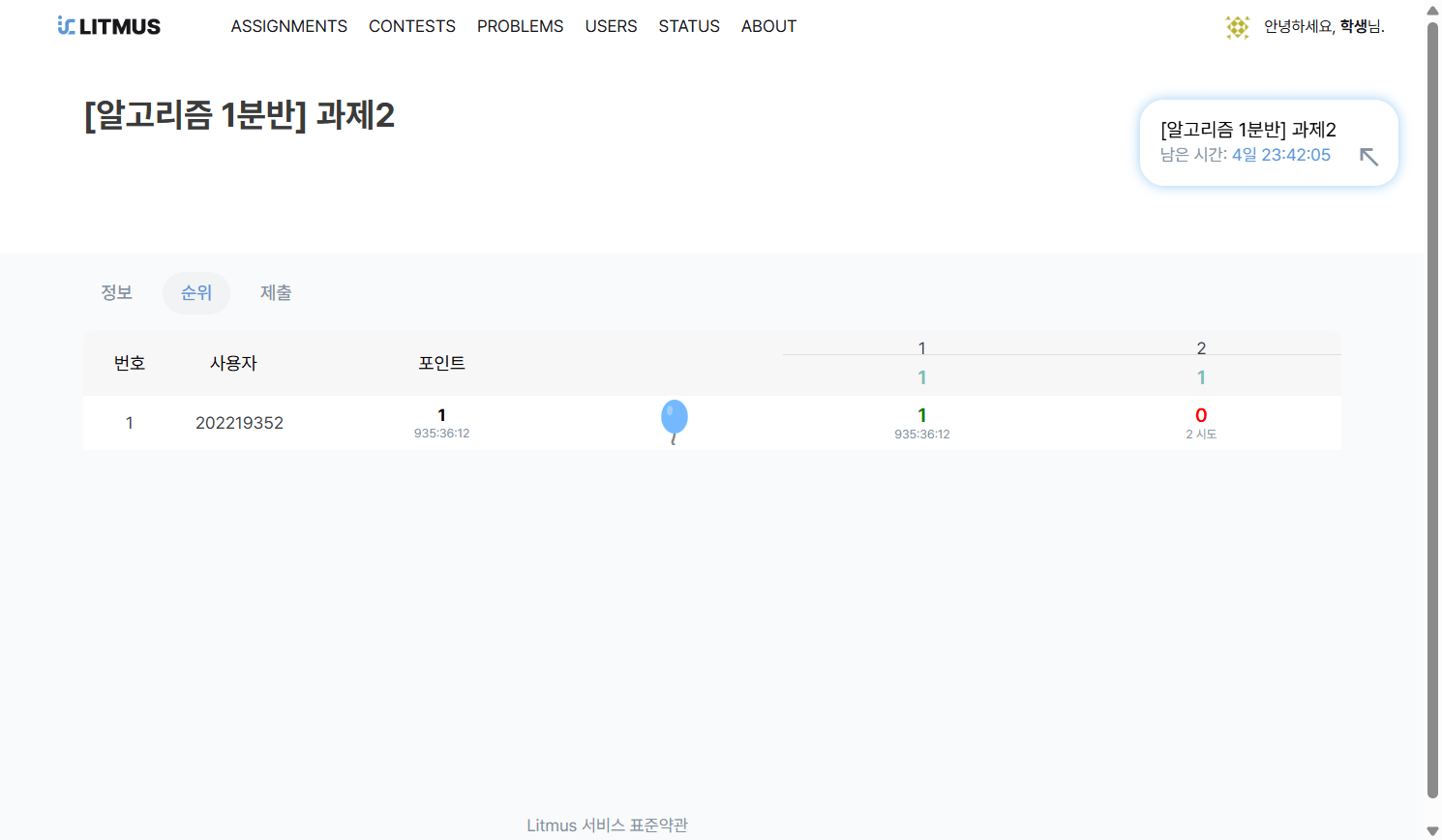 과제는 ASSIGNMENTS 탭에서, 대회는 CONTESTS 탭에서 확인할 수 있습니다.